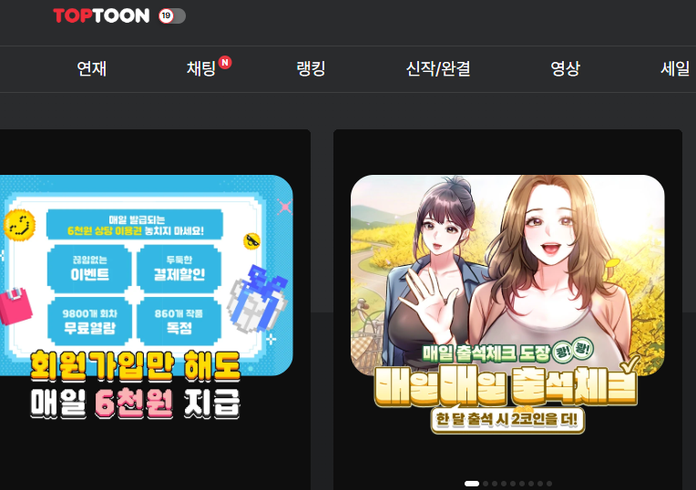 특징: 요일별 연재 시스템이 매우 체계적이며, 전 연령층이 즐길 수 있는 방대한 라인업을 보유하고 있습니다.